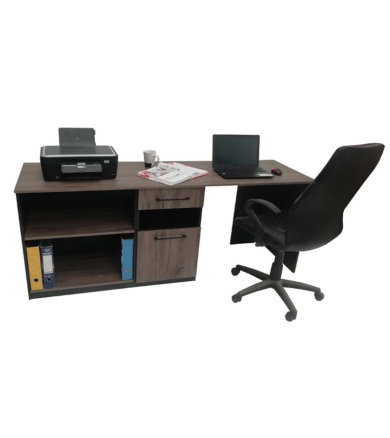 Create a user-friendly and lovely workspace with this Exeter Desk. A stylish yet functional design. The Desk has a large surface to add a laptop, 2nd screen and even a printer. It also comes with 2 open shelves for your lever arch files. The open space between the drawer and the door can be used to organize anything from favorite books to stationery items, photo frames, etc… Just what you need – a functional desk with a modern finish.
