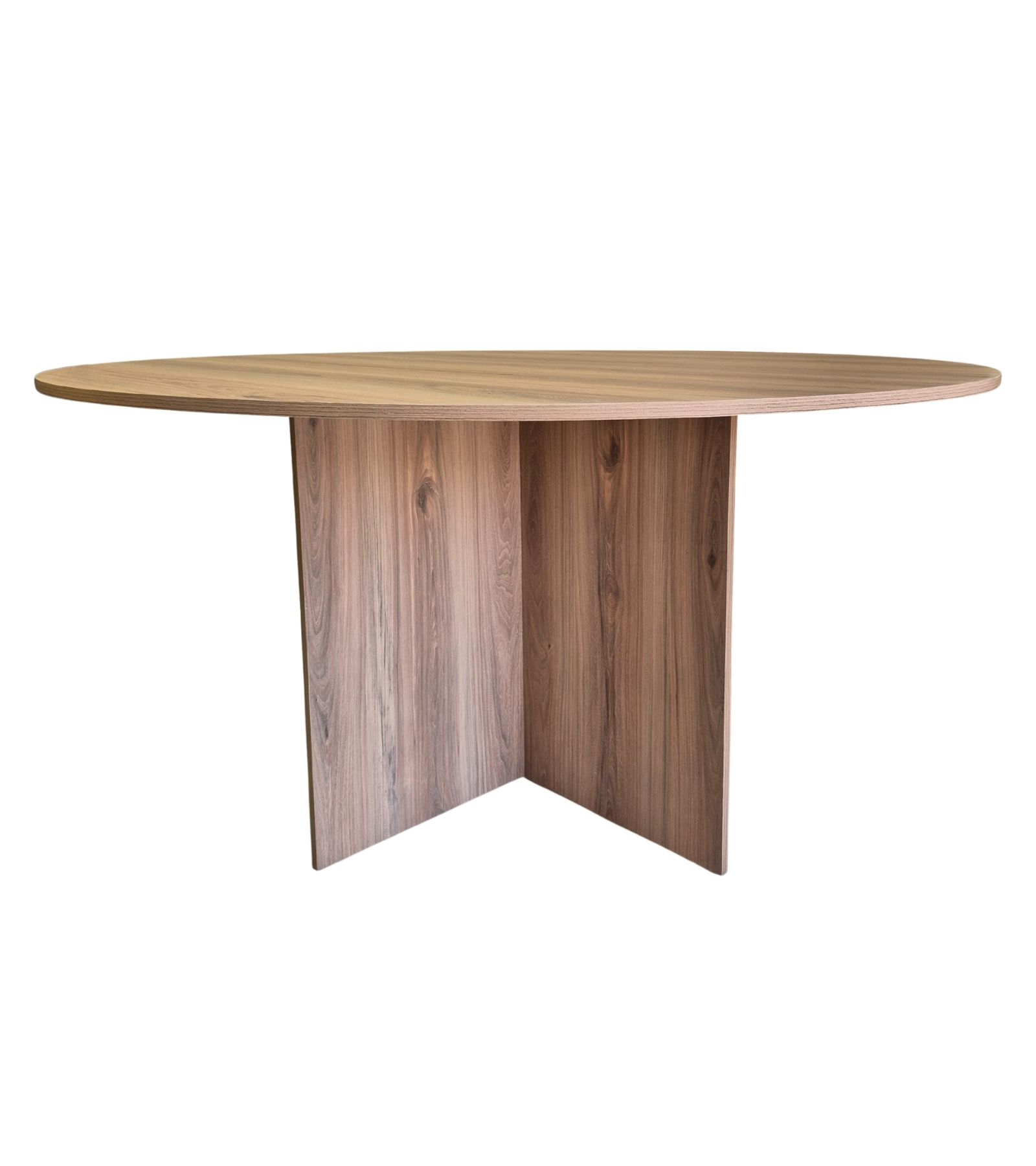 “Introducing the Milano Dining Room Table 150cm, a modern and stylish centerpiece for any dining space. With its round shape and sturdy X-shaped leg design, this table blends contemporary aesthetics with everyday functionality. It comfortably seats up to 6 people, making it perfect for family meals or gatherings with friends.
