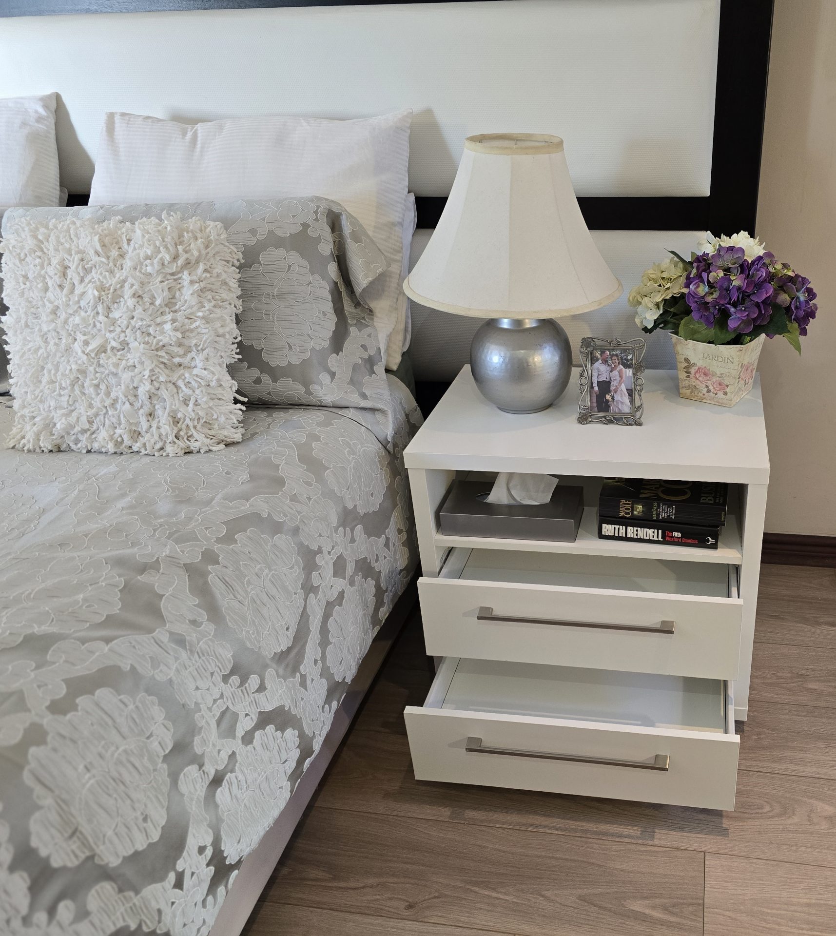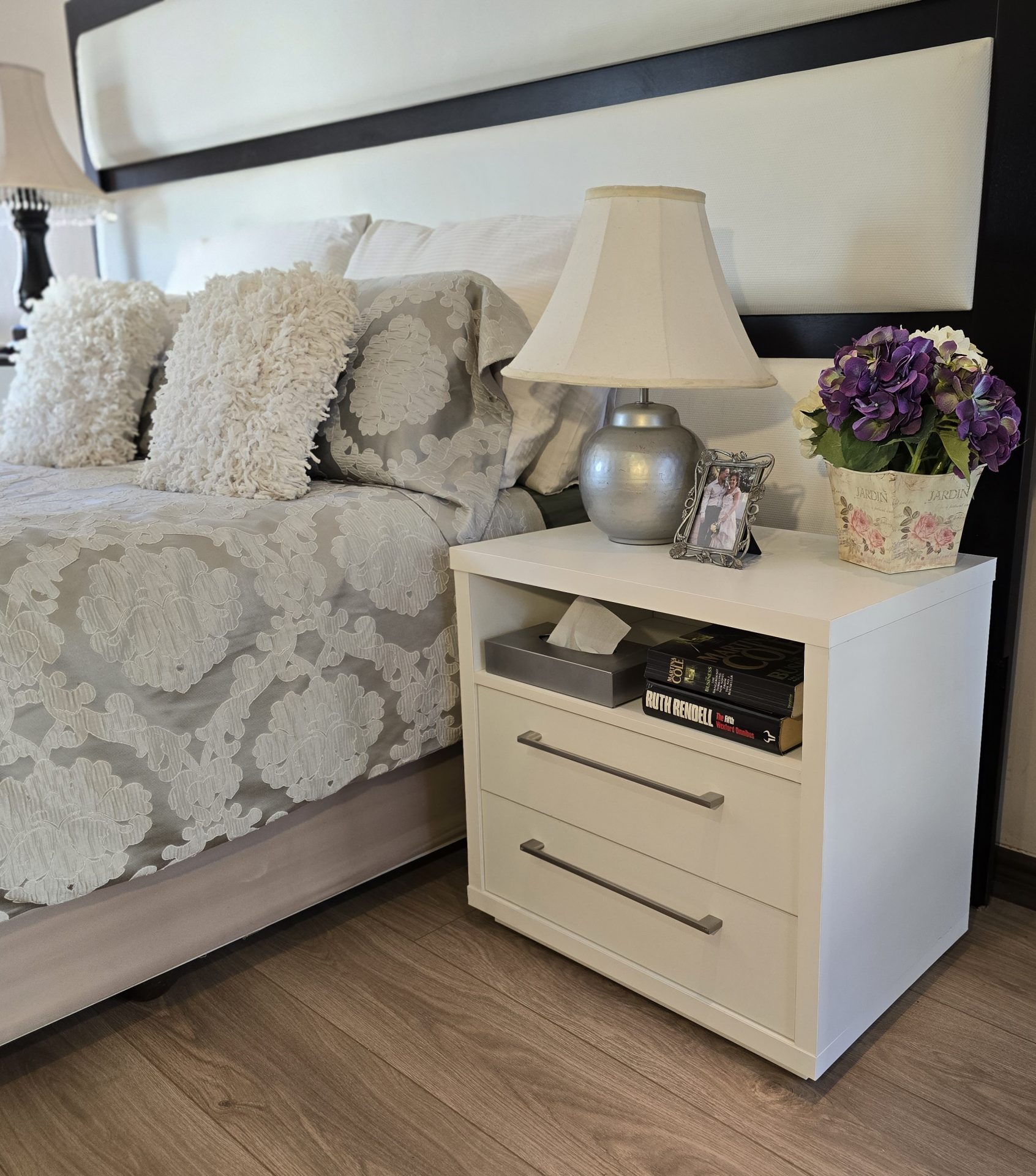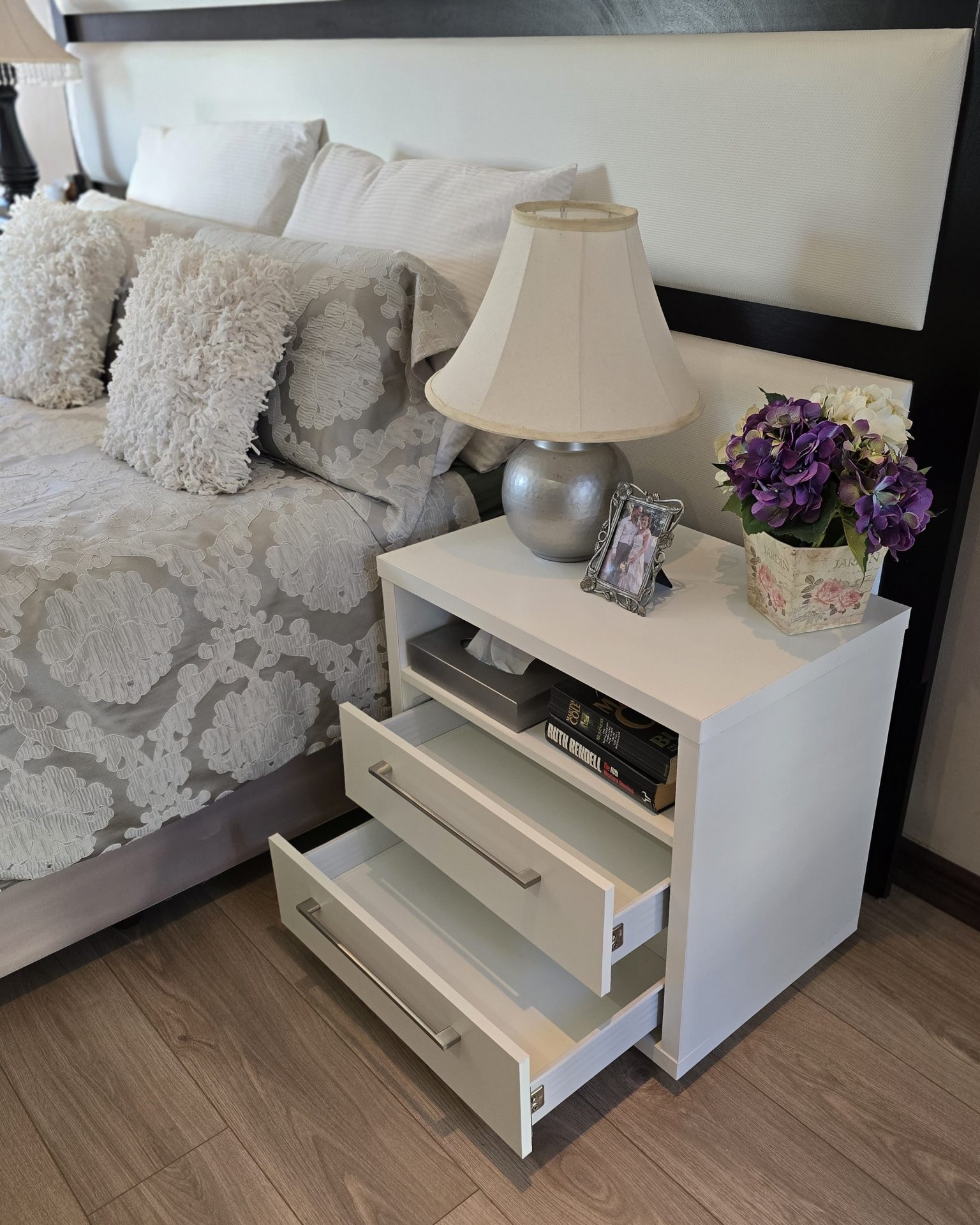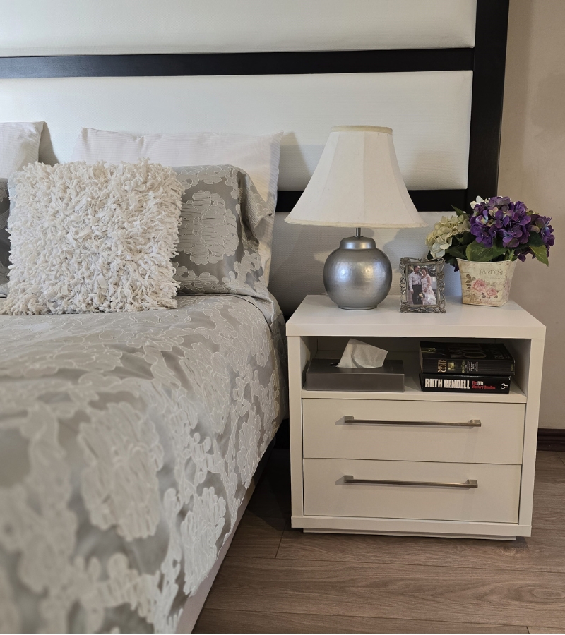 Elevate Your Space: The Novara Bedside Table doesn’t just offer functional storage – it enhances the overall aesthetic of your bedroom. Pair it with complementary pieces from our Flatpack DIY collection to create a cohesive, stylish environment that suits your unique taste.