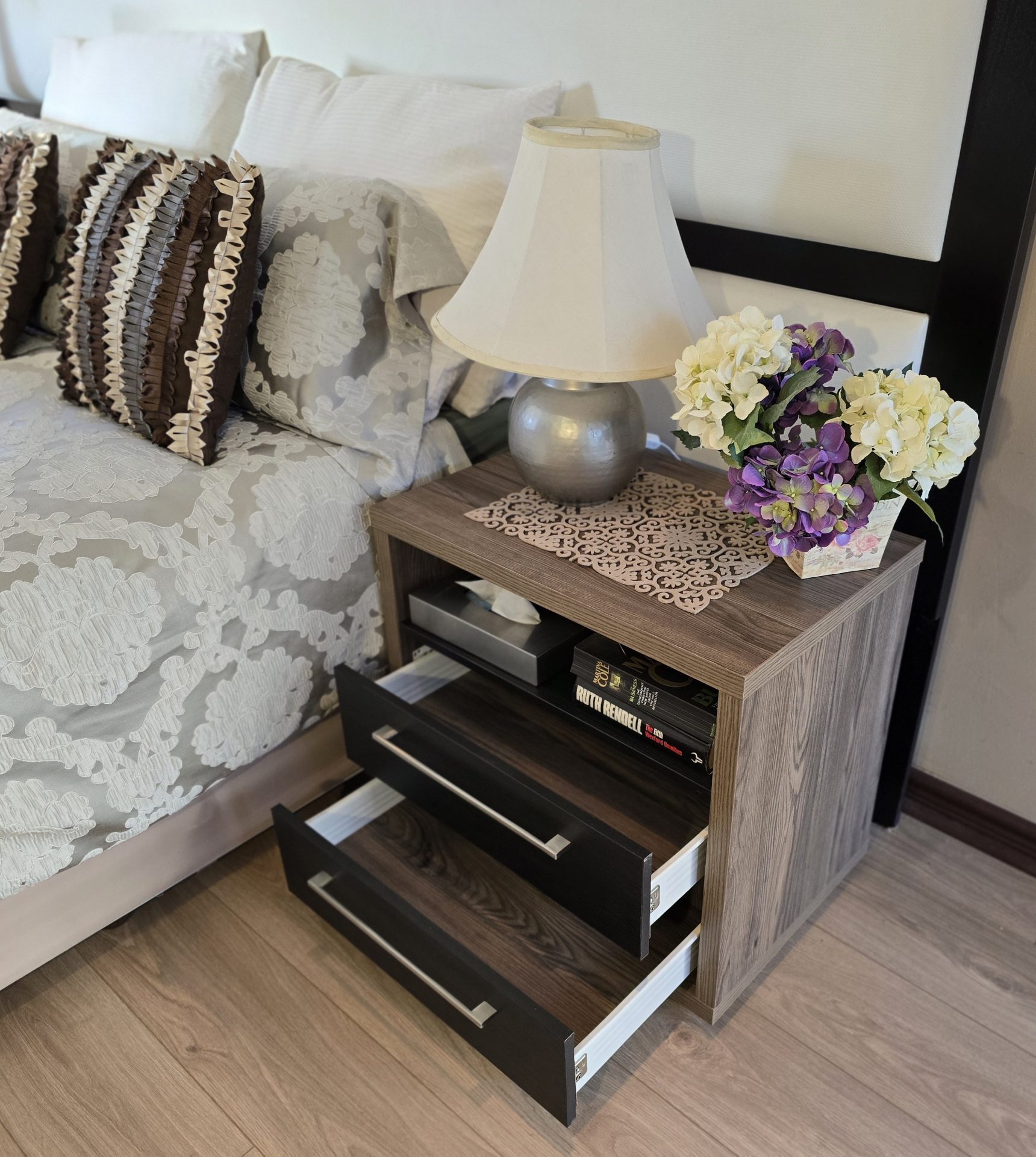Elevate Your Space: The Novara Bedside Table doesn’t just offer functional storage – it enhances the overall aesthetic of your bedroom. Pair it with complementary pieces from our Flatpack DIY collection to create a cohesive, stylish environment that suits your unique taste.