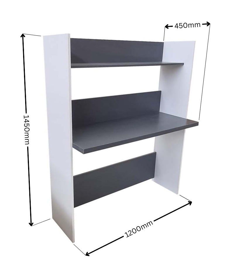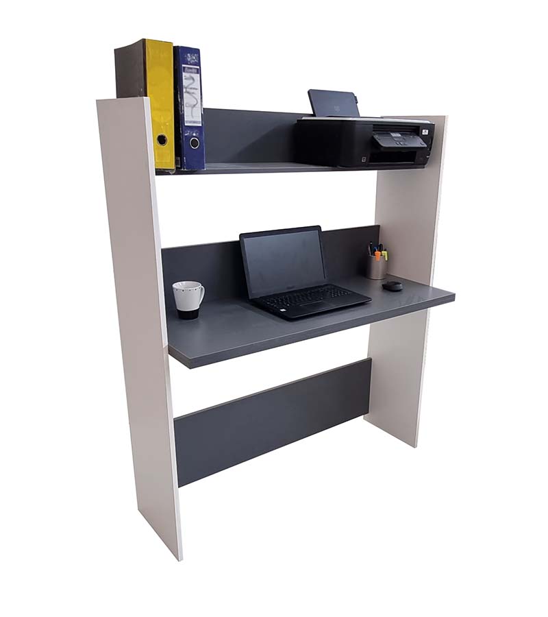 If you don’t have a lot of space then this desk is for you. It protrudes 45cm from the wall. The shelf at the top can be used to organize anything from favorite books, files to stationery items, photo frames, etc… The desk features clean cut lines , is sturdy and highly versatile. Suitable for both home and office use, the perfect desk for a child’s bedroom to do homework. Just what you need – a functional desk with a modern finish.